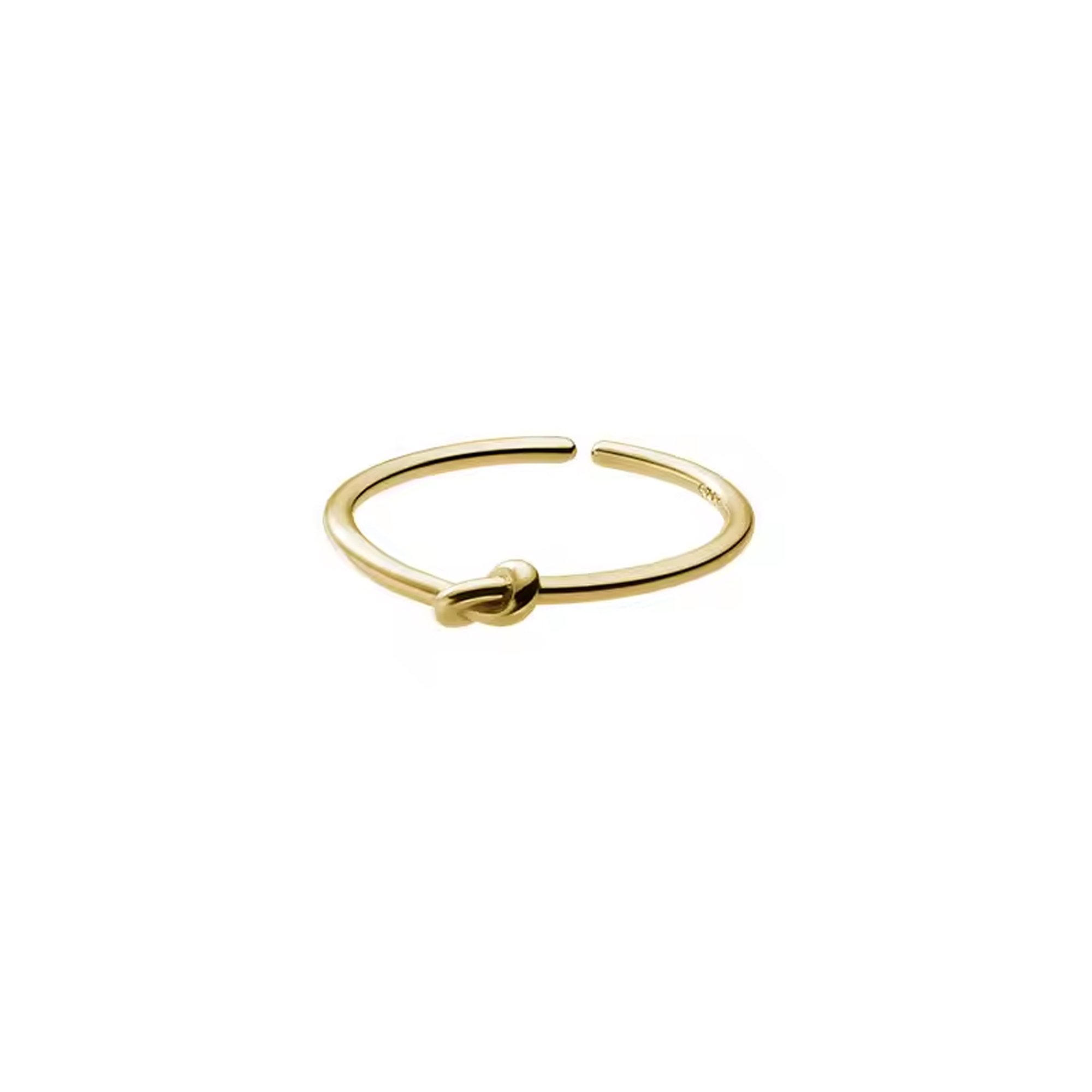 Un símbolo de unión y elegancia. Este anillo está elaborado en plata italiana con un delicado enchapado en oro y un elegante diseño de nudo al frente, que representa la conexión y el equilibrio. Su formato ajustable permite adaptarlo a distintas medidas, ideal para lucir todos los días o regalar un detalle con significado.