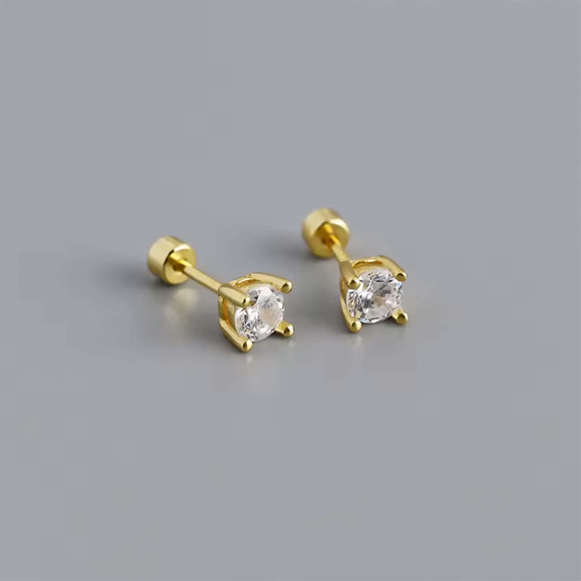 Aros a rosca de plata con enchapado en oro con circón en caja cuadrada