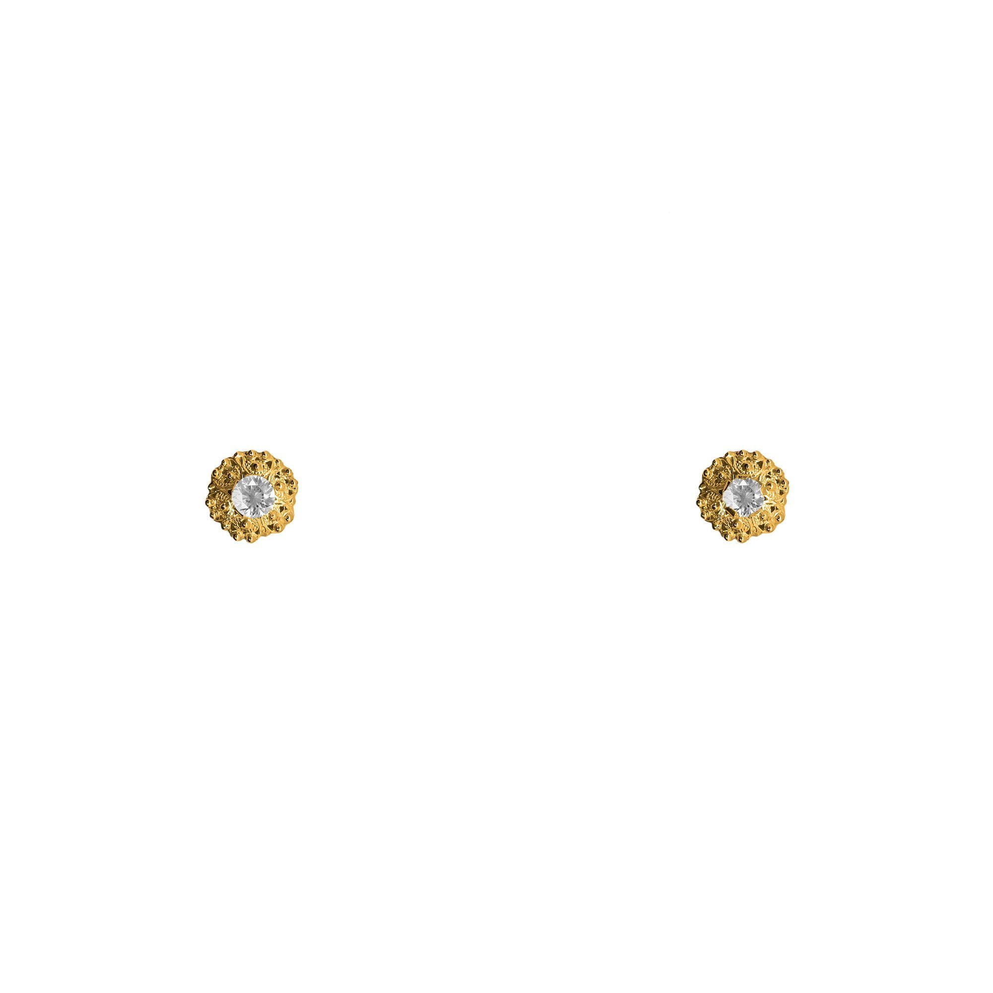Aros de oro amarillo filigrana con diseño de flor de guayaba y circones
