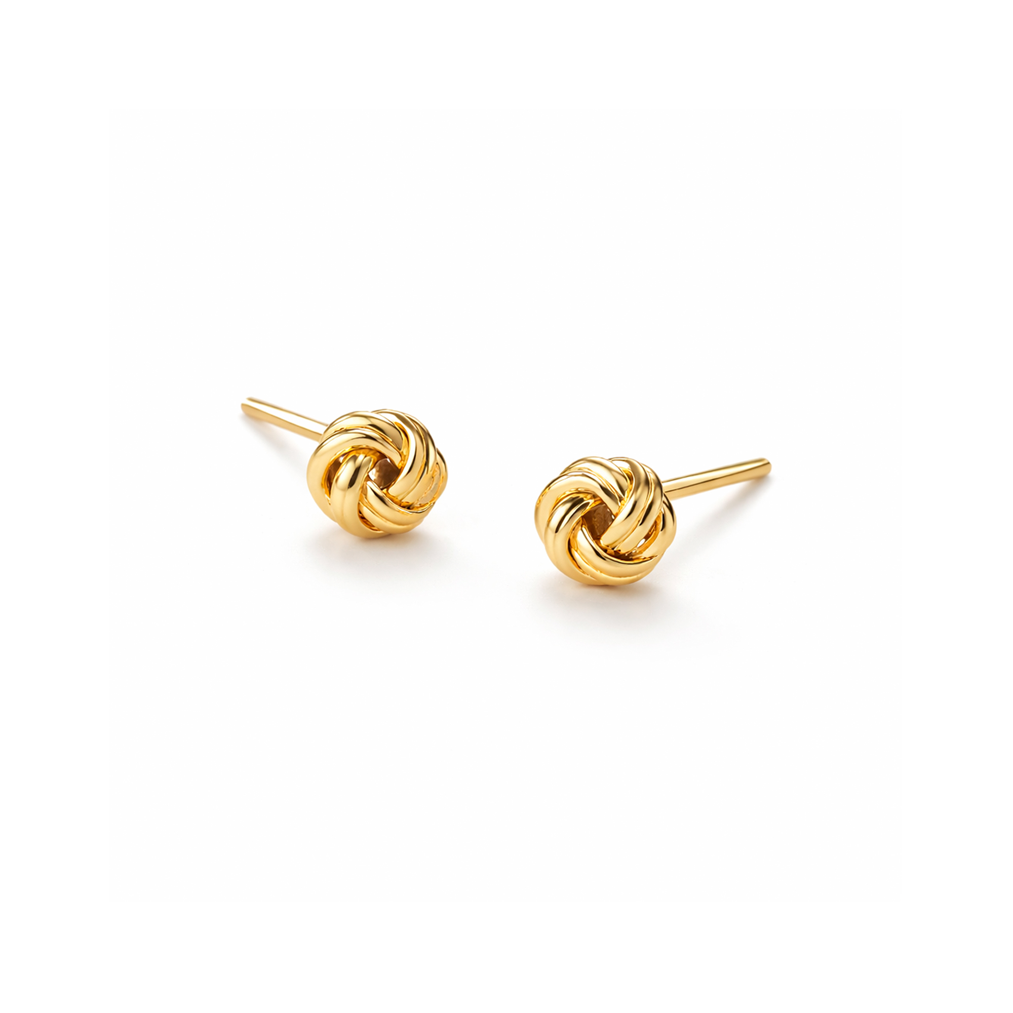 Aros de plata 925 con enchapado en oro, inspirados en el símbolo del nudo de amor, representación de la unión, el compromiso y la conexión eterna. Su diseño elegante y con significado profundo los convierte en una joya perfecta para regalar o llevar como recordatorio de vínculos especiales.
