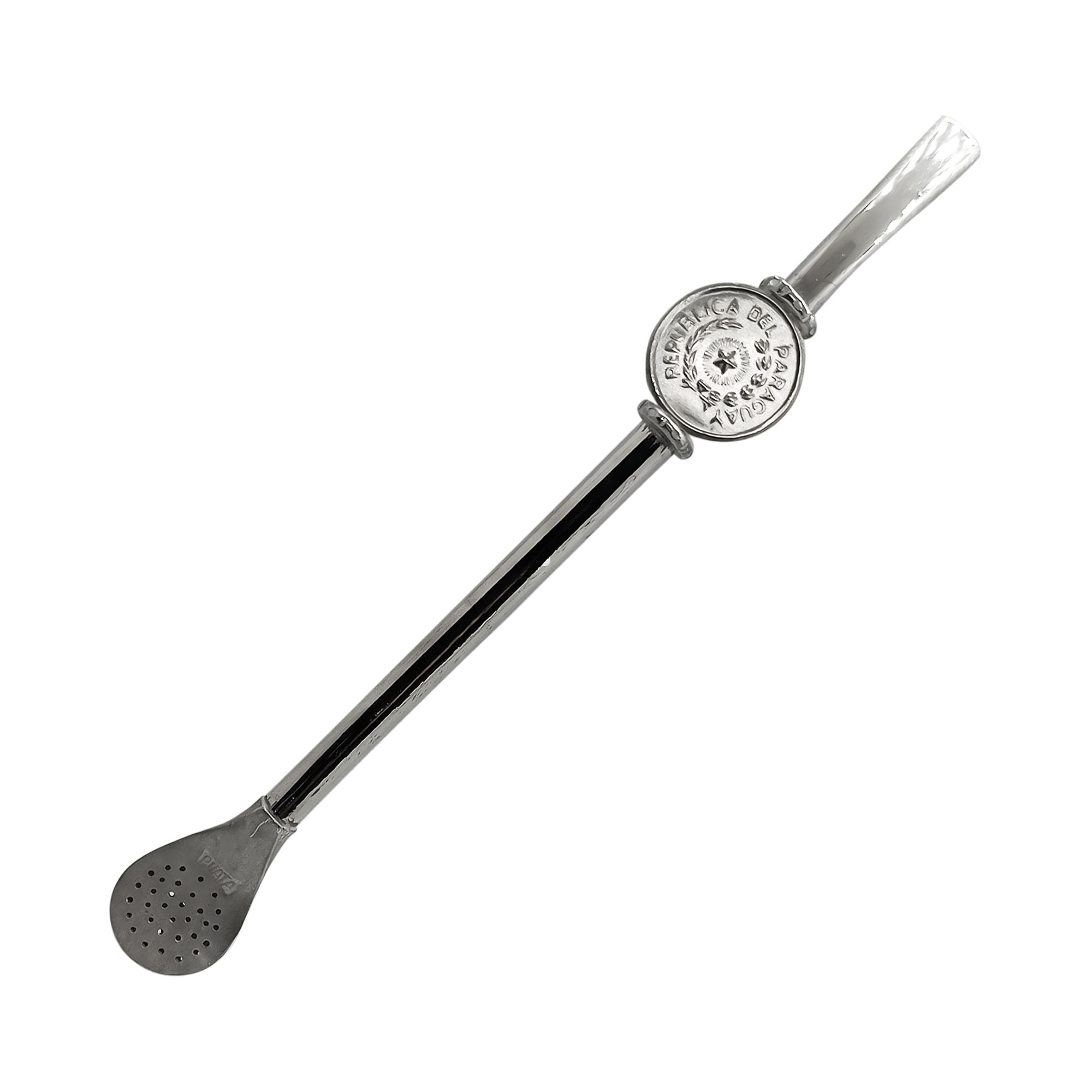 Eleva tu experiencia de tomar tereré con esta bombilla de plata nacional, diseñada para los amantes de la tradición y la elegancia. Fabricada con plata de alta calidad, esta bombilla garantiza durabilidad y un sabor puro en cada sorbo. Su diseño incorpora un escudo estampado, añadiendo un toque distintivo a tu ritual diario. Perfecta para regalar o para uso personal, esta bombilla es una pieza esencial para cualquier coleccionista de accesorios de tereré que aprecia tanto la funcionalidad como la estética.