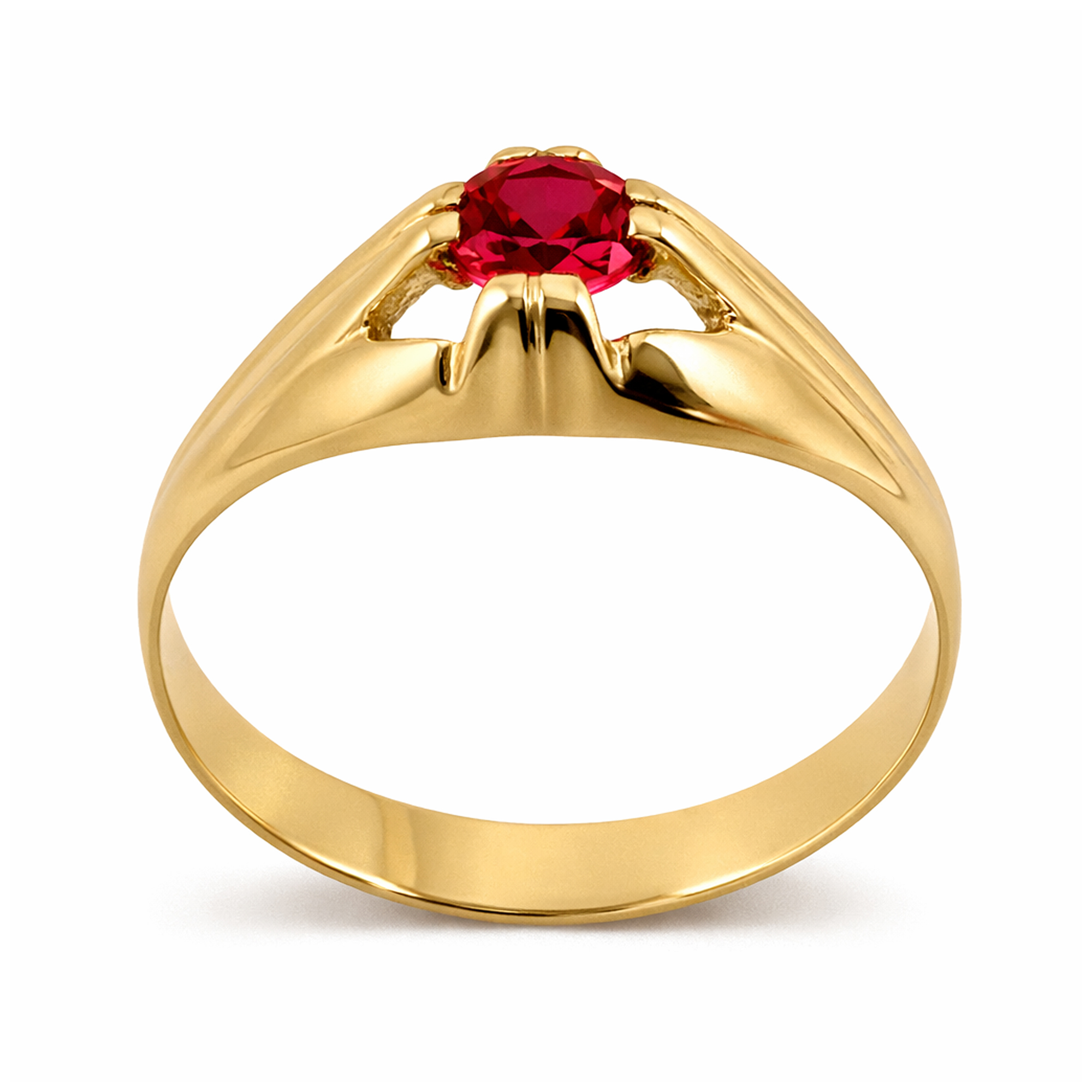 Solitario para caballero elaborado en oro amarillo 18K con un circón central que aporta brillo y presencia. El diseño incorpora hombros calados que añaden carácter y definen la estructura del anillo sin perder equilibrio. Es una pieza firme y bien proporcionada, ideal para quienes buscan un modelo masculino con detalles trabajados.