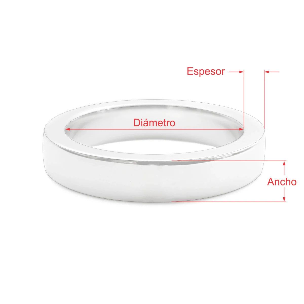 Tanto el ancho como el espesor de cada anillo están especificados en la descripción del producto. Estas medidas corresponden a los tamaños máximos, ya que el corte del anillo no siempre es completamente recto. En el caso de anillos con cuerpo variable, se especificará únicamente la dimensión del punto más fino.