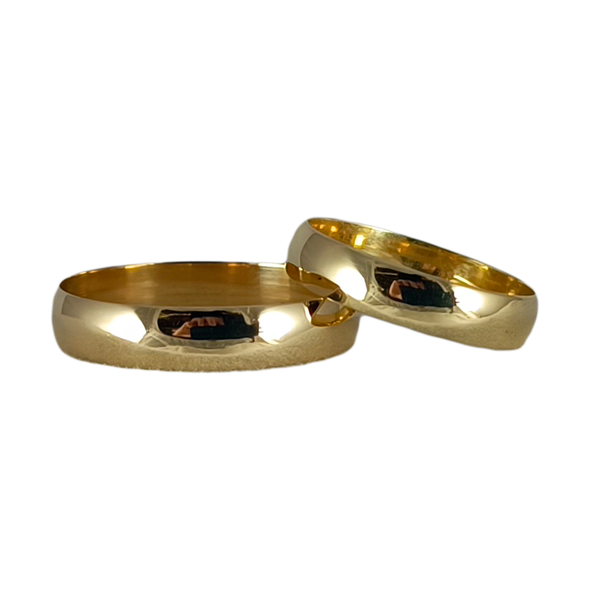 Par de alianzas de oro amarillo clásico media caña 4mm