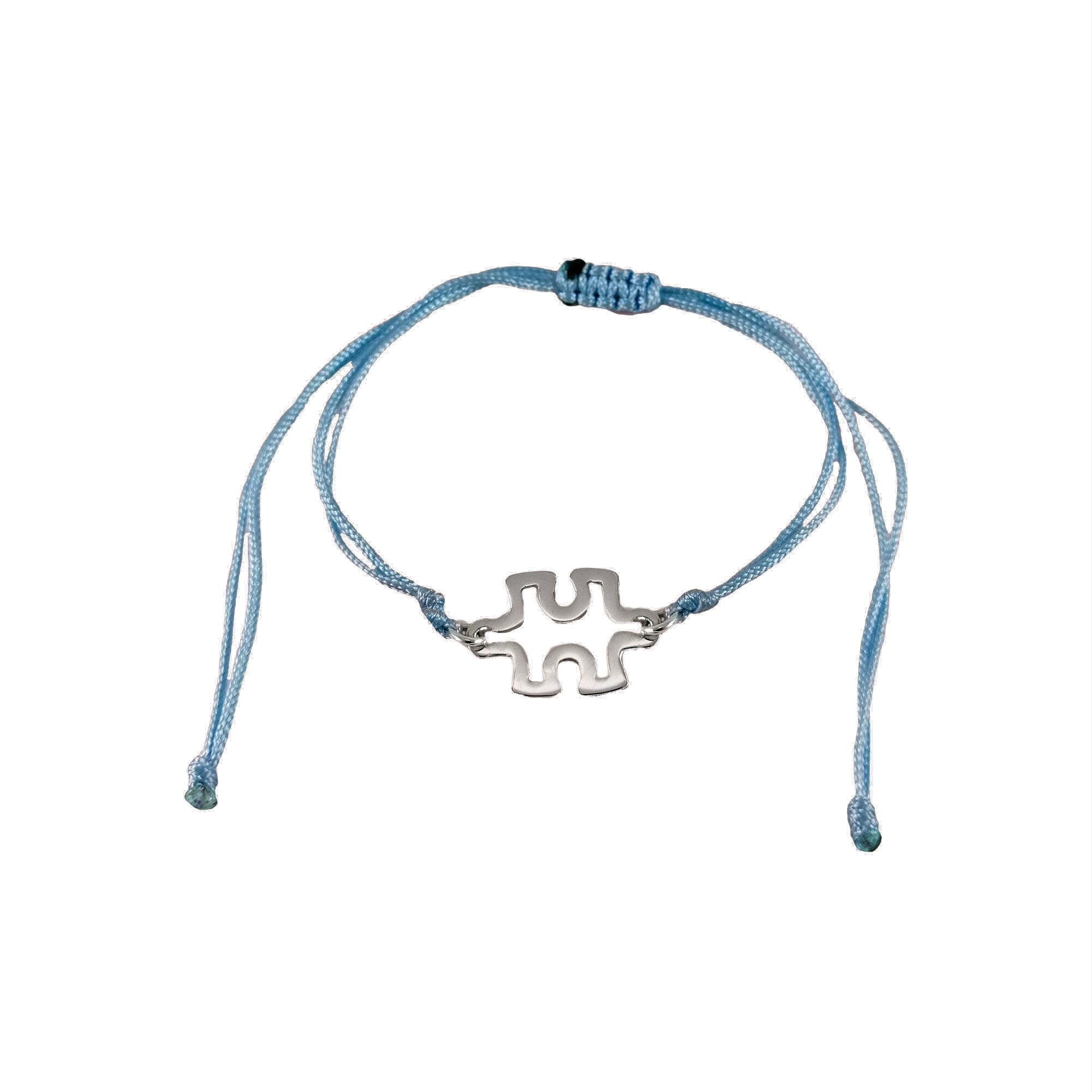 Pulsera de hilo con rompecabezas de plata - Celeste