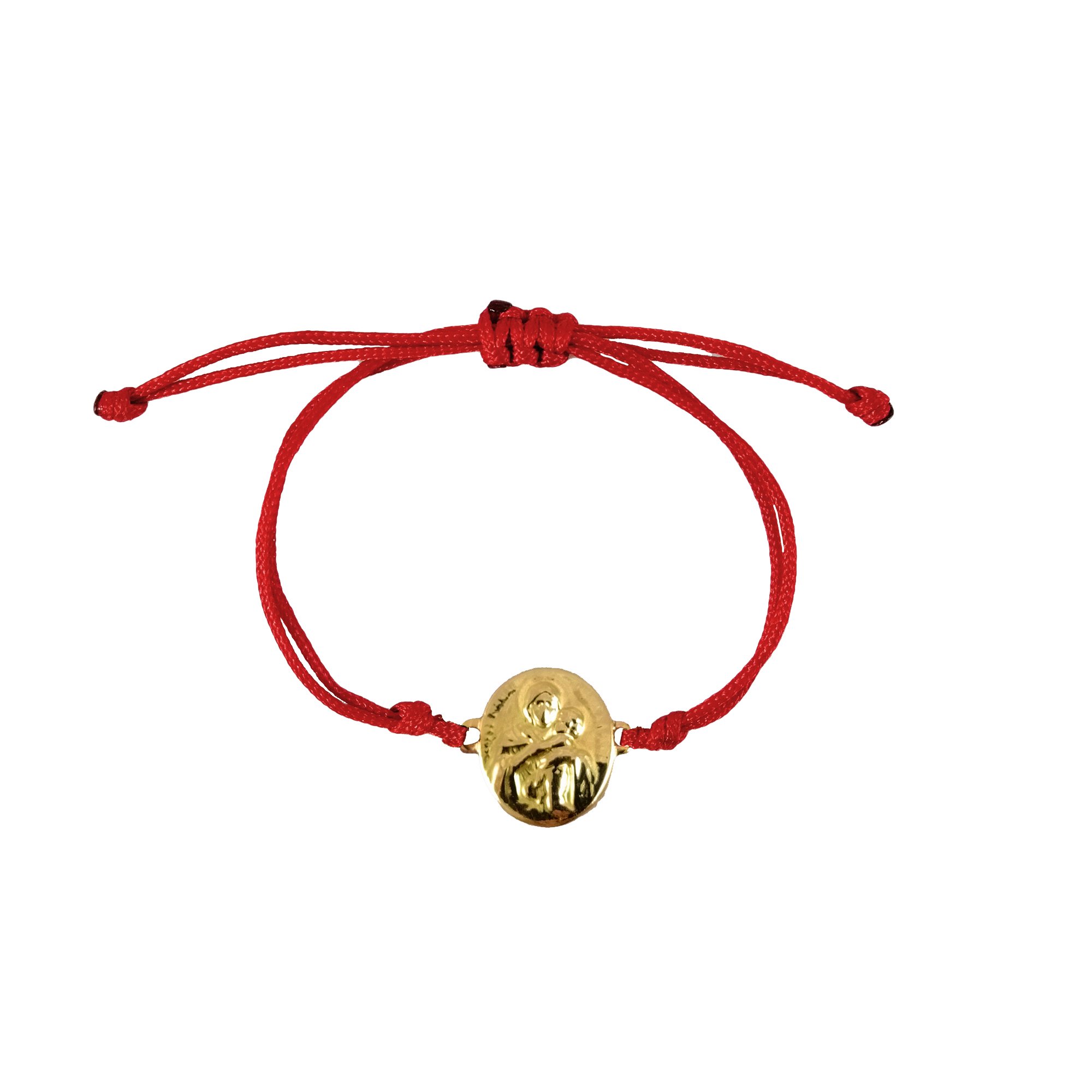 Pulsera de hilo rojo con medallita religiosa en oro 18K
