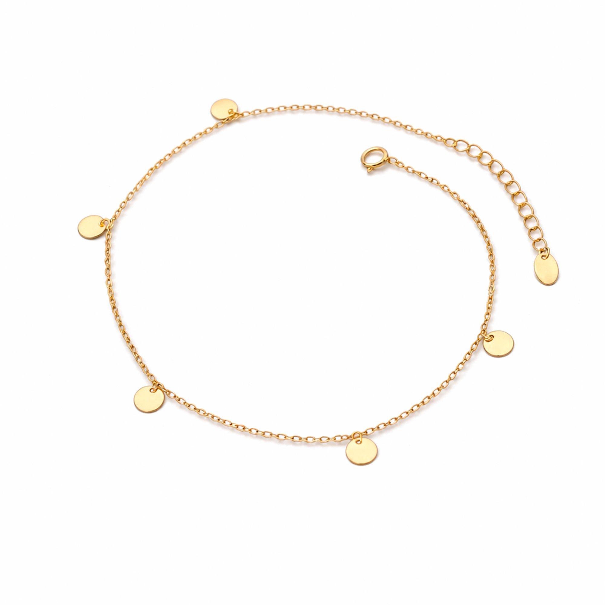 Pulsera elaborada en plata italiana con enchapado en oro, diseñada con medallas colgantes que aportan movimiento y un detalle distintivo. El contraste entre el metal base y el enchapado realza el brillo del conjunto, logrando una pieza delicada y fácil de combinar para el uso diario.