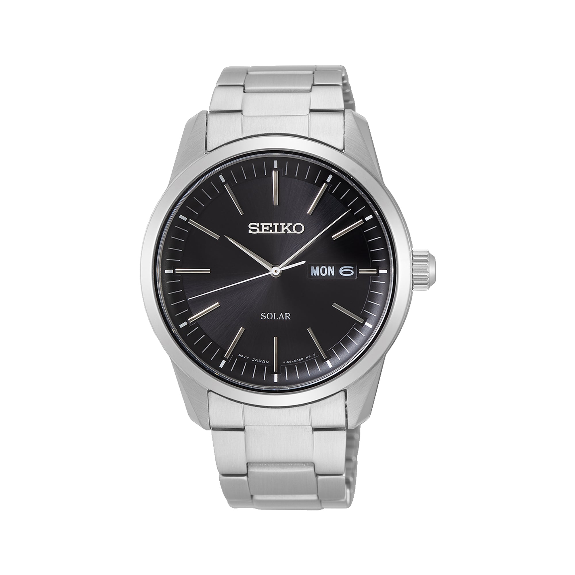 Reloj Seiko con caja y correa de acero inoxidable, diseñado con un diámetro de 40 mm que ofrece una presencia equilibrada en la muñeca. Incorpora un movimiento solar Seiko Instruments Inc., que funciona con carga de luz y brinda una autonomía prolongada sin necesidad de cambio de batería frecuente. El conjunto está protegido por cristal de zafiro, conocido por su alta resistencia a rayaduras, lo que garantiza una mayor durabilidad en el uso diario.