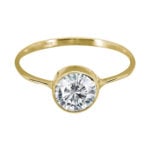 Un diseño elegante y minimalista que resalta la belleza en cada detalle. Este solitario de oro amarillo presenta un circón embutido redondo elevado, aportando un brillo sutil y sofisticado. Su estructura refinada y su acabado pulido lo convierten en una joya atemporal, perfecta para quienes buscan un anillo con distinción y estilo.