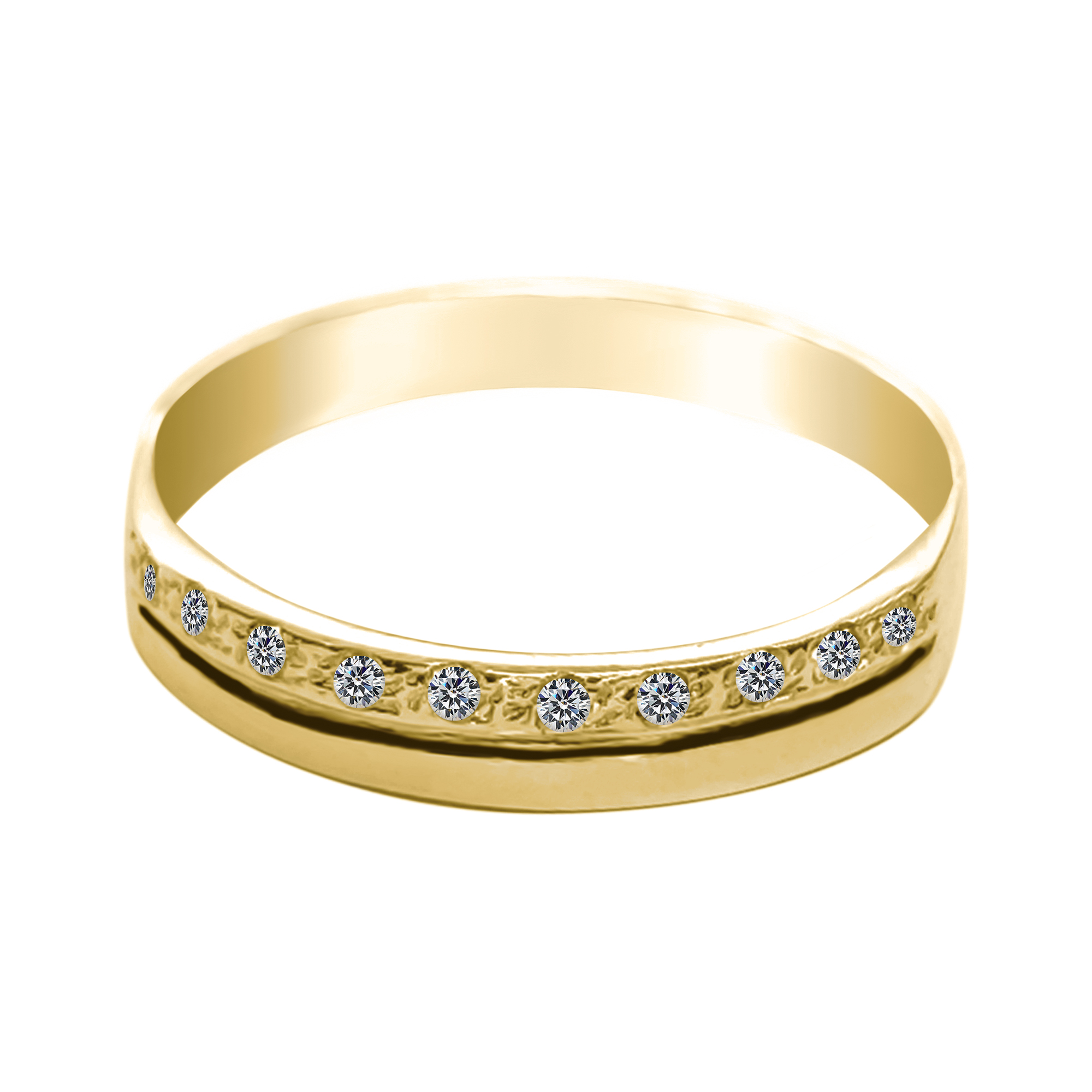 Un diseño elegante y lleno de brillo. Este solitario está elaborado en oro amarillo 18K y se distingue por su media banda decorada con circones blancos, todos engarzados cuidadosamente dentro del cuerpo del anillo. El engaste interno aporta un acabado liso y uniforme, que realza la comodidad sin perder la luminosidad de las piedras. Una joya refinada y versátil, ideal para quienes buscan un anillo sofisticado, perfecto para el uso diario o para ocasiones especiales.