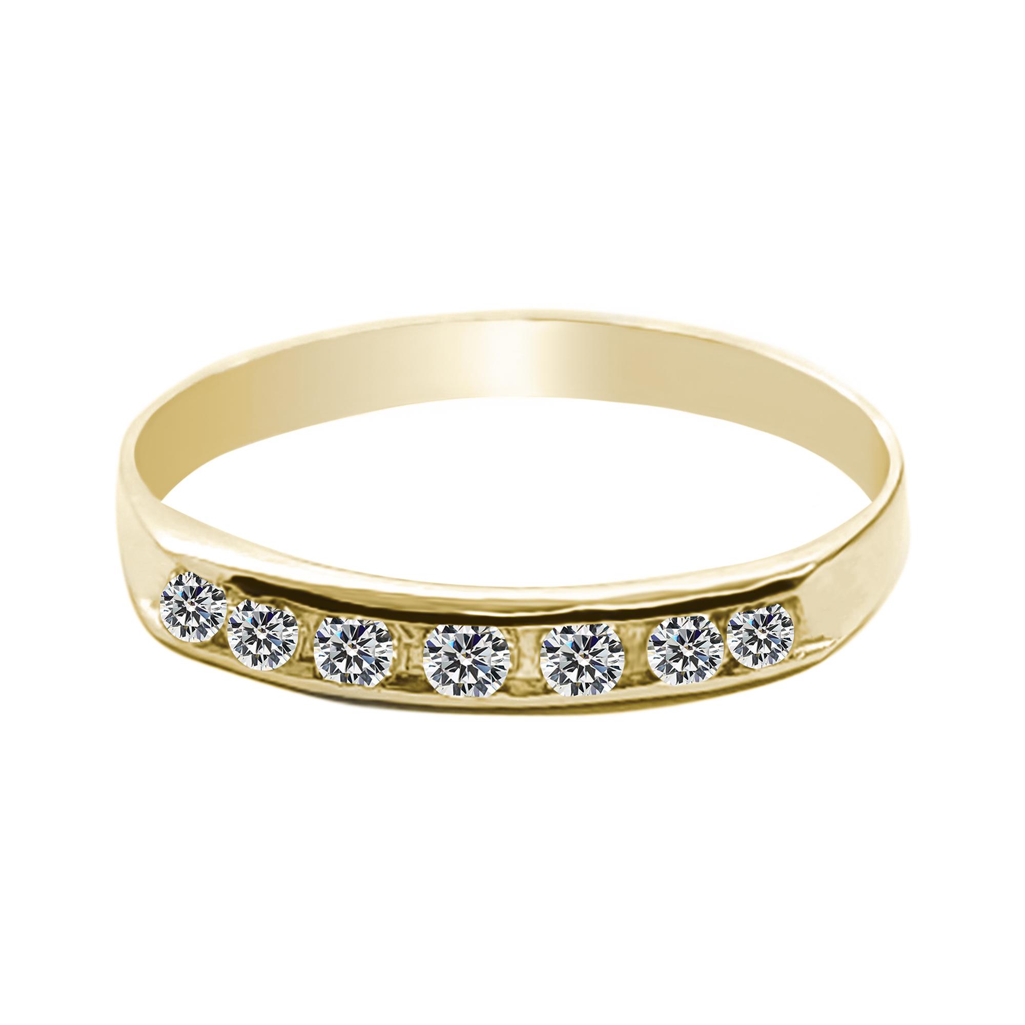 Un diseño clásico con un toque de brillo único. Este solitario está elaborado en oro amarillo 18K y presenta siete circones blancos embutidos en el cuerpo del anillo. El embutido realza la luminosidad de cada piedra manteniendo una superficie lisa y elegante, ideal para quienes valoran la comodidad sin dejar de lado el estilo. Una joya sofisticada y versátil, pensada para acompañar tanto el uso diario como las ocasiones más especiales.